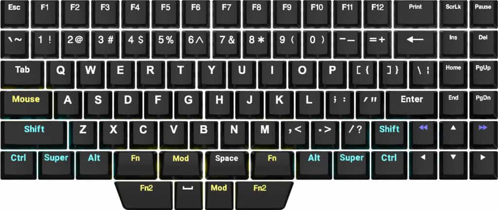 The UHK 80 layout is based on the UHK 60 layout with two significant changes.