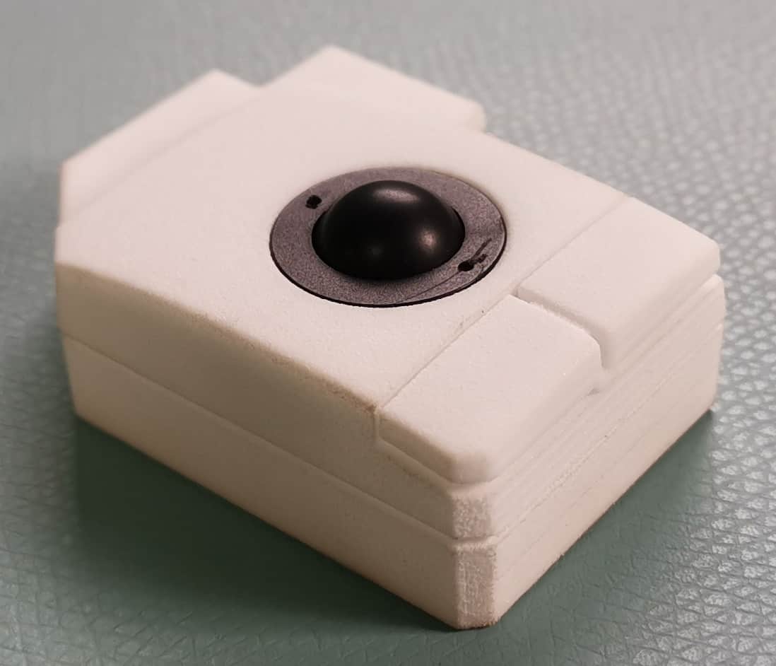 Similarly to the key cluster module prototype, the above trackball module is only a mechanical prototype, but the functional PCB has been designed in the meantime, was sent to the fab, and should be manufactured soon.