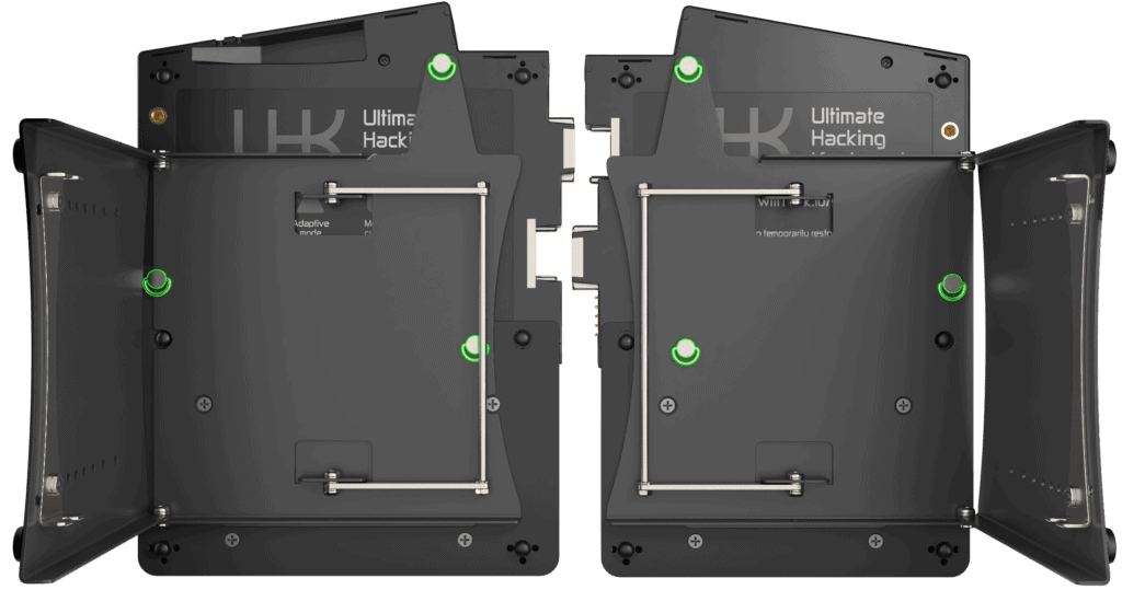 Then unbox your Riser, take the 2 screws provided with it, and use the total number of 6 screws to screw Riser and the palm rest to your UHK according to the following picture: