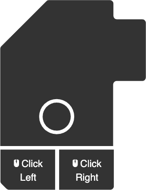 When the Mod layer is active, the pointing stick functions like a scroll wheel, enabling vertical and horizontal scrolling.