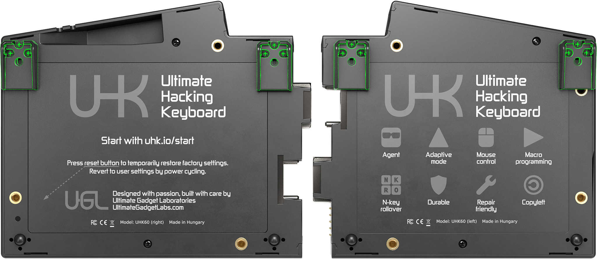 When tightening the screws, make sure not to overtighten them! Tighten them just enough so that the bases are flat against the surface of the keyboard.