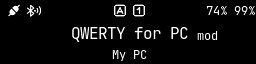 - The middle row displays the name of the current keymap (QWERTY for PC) and the current non-base layer (mod) in a smaller font.