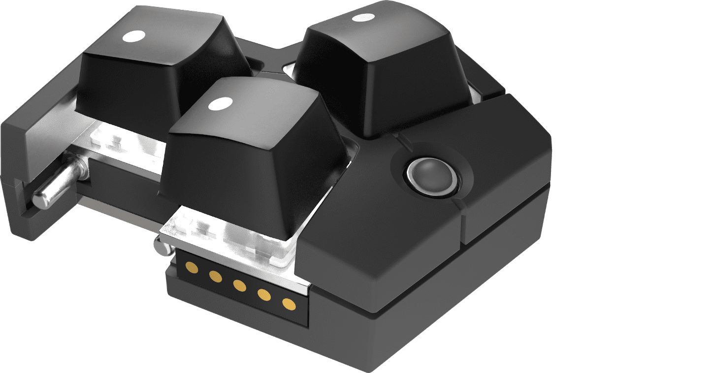 The key cluster module attaches to the left keyboard half, and it features three regular keys, two buttons, and a mini trackball, which can also be pressed - acting as an extra button. All of the keys and buttons are fully configurable. Following is a demonstration of the key cluster and trackball modules.