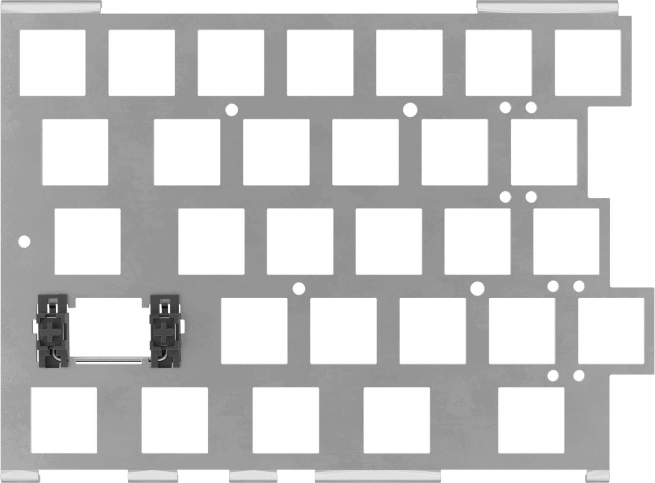 - Remove all the switches of the left keyboard half with the keycap/switch puller provided with your UHK. (If you have a UHK 60 v1, you'll need to desolder and resolder the switches, as they don't have sockets.)