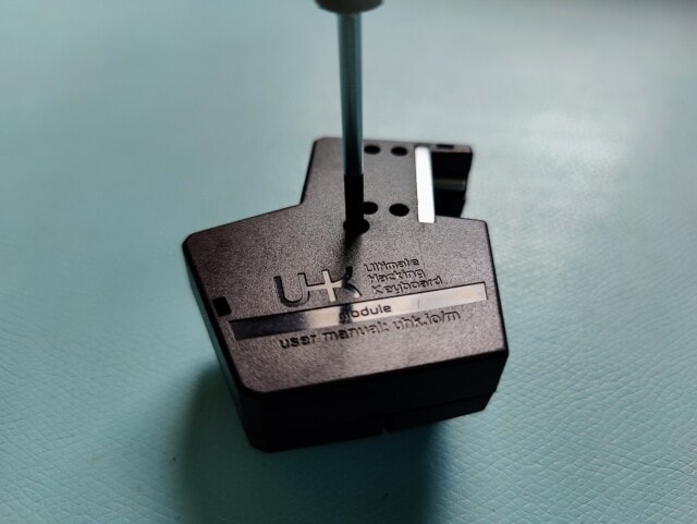Put back the top case and the case buttons, and screw the screw at the center of the back of the module:
