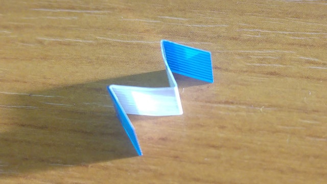 The FFC cable has a blue plastic tag at either end that should be used to push the cable in.
