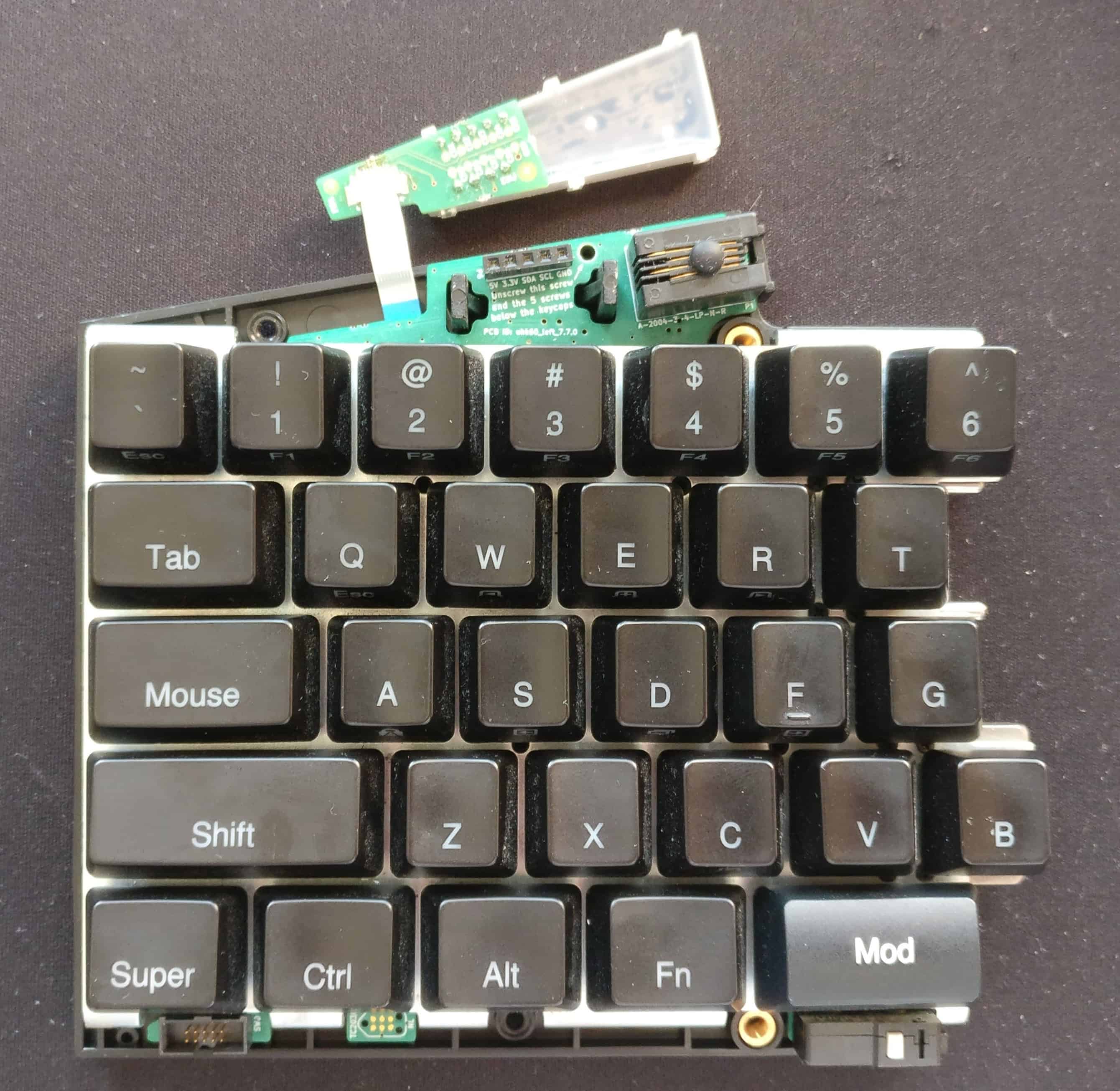 First up, disconnect the left keyboard half, and remove the palm rest and feet if attached.